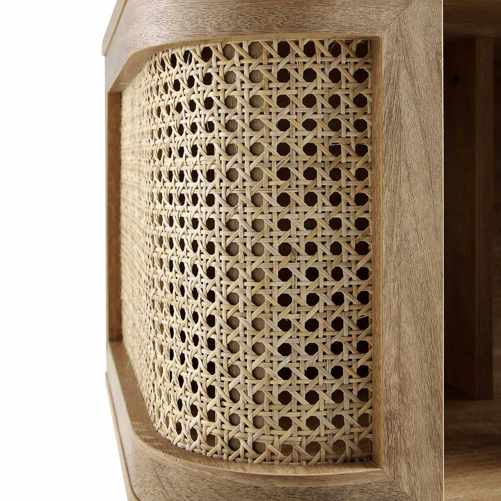 Wood Curved Rattan Bedside Table, Natural