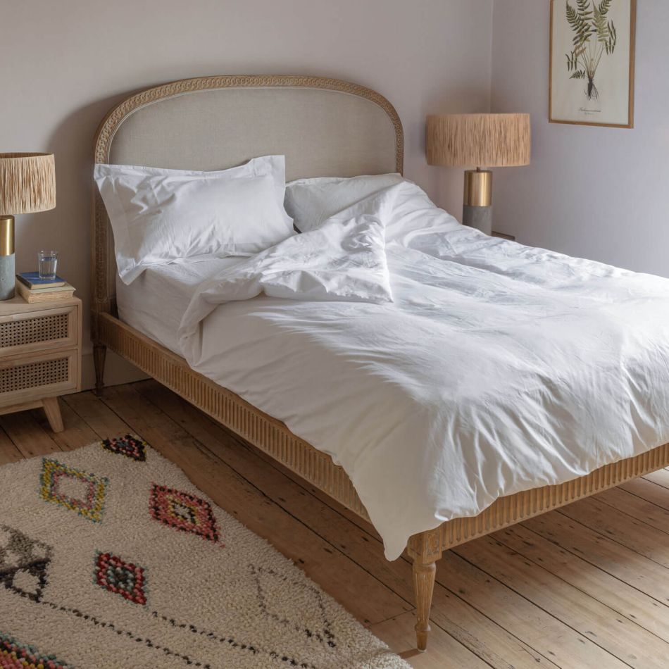 • Material: Solid wood frame, high-density foam, natural linen fabric