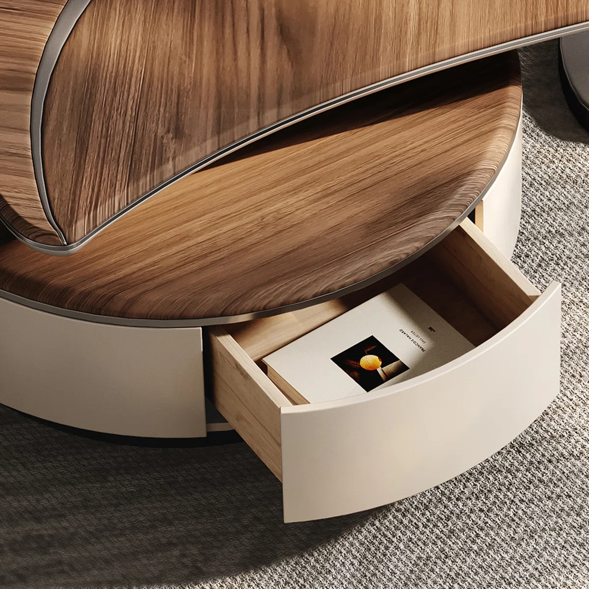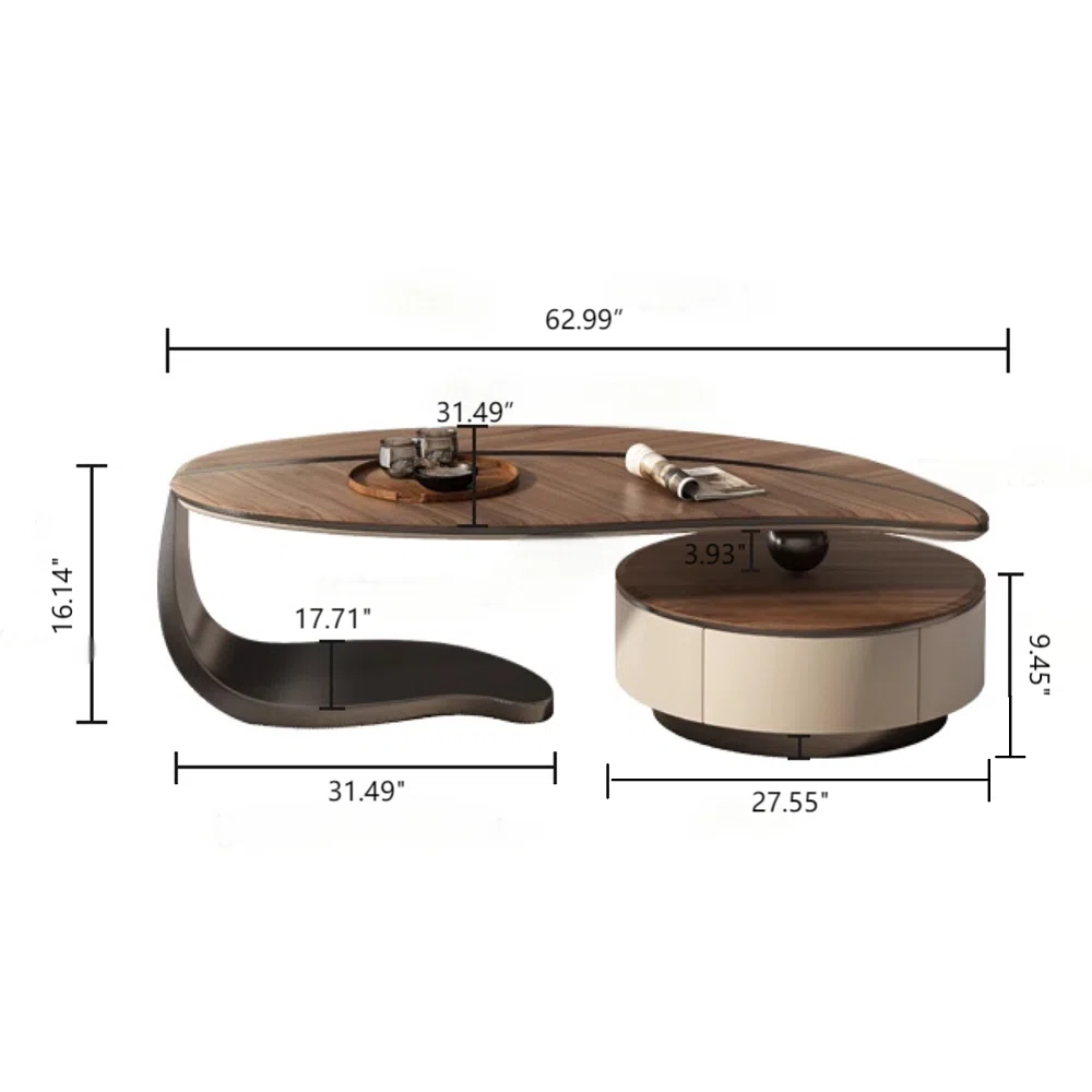 1. Mid-Century Modern Wood Leaf Shaped Coffee Table With 2 Drawer photo review