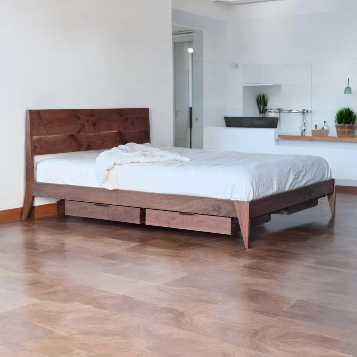 Product Description The Nismaaya Dae Walnut Wood with Storage Bed is a versatile solution for modern living. With dimensions of [provide dimensions], it offers a spacious and organized sleeping surface. The walnut wood double bed frame not only showcases the natural beauty of the wood but also incorporates discreet storage compartments beneath the bed. The classic yet functional design ensures that the Dae Bed effortlessly enhances the ambiance of your bedroom, providing both comfort and convenient storage.