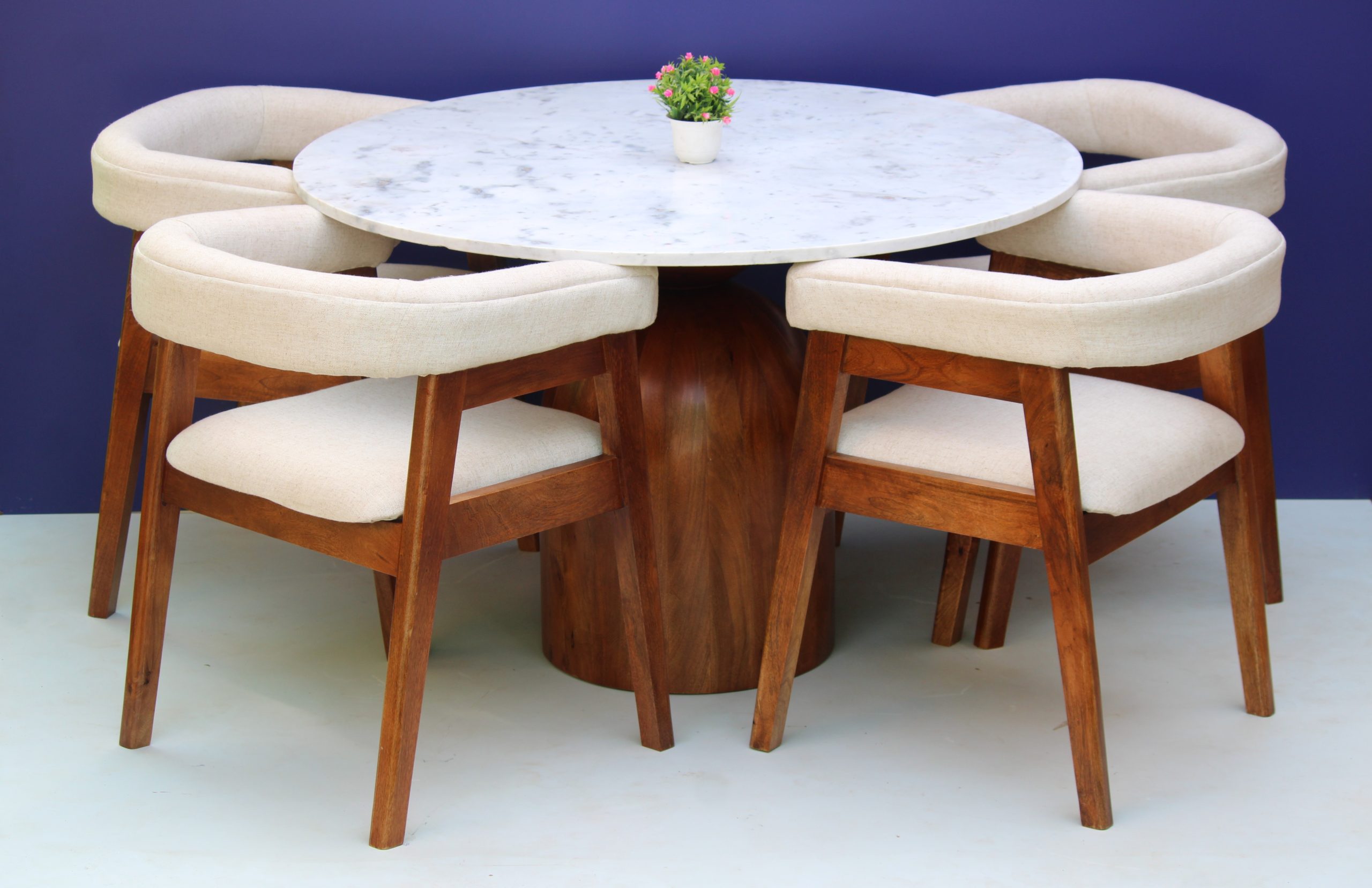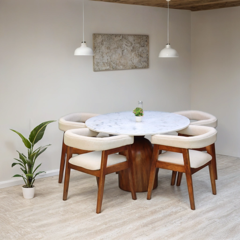 NURU-Sheesham Wood Dining Set With 4 Chair ,Marble Top