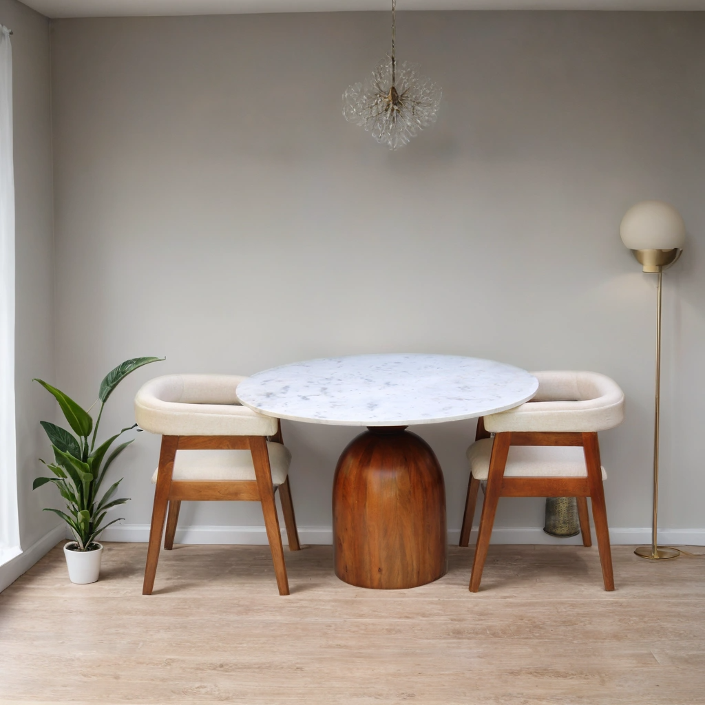 Elevate your dining experience with the elegant and sturdy NURU Dining Set. Crafted from premium Sheesham wood (Indian Rosewood), this 5-piece set blends timeless craftsmanship with modern aesthetics.
