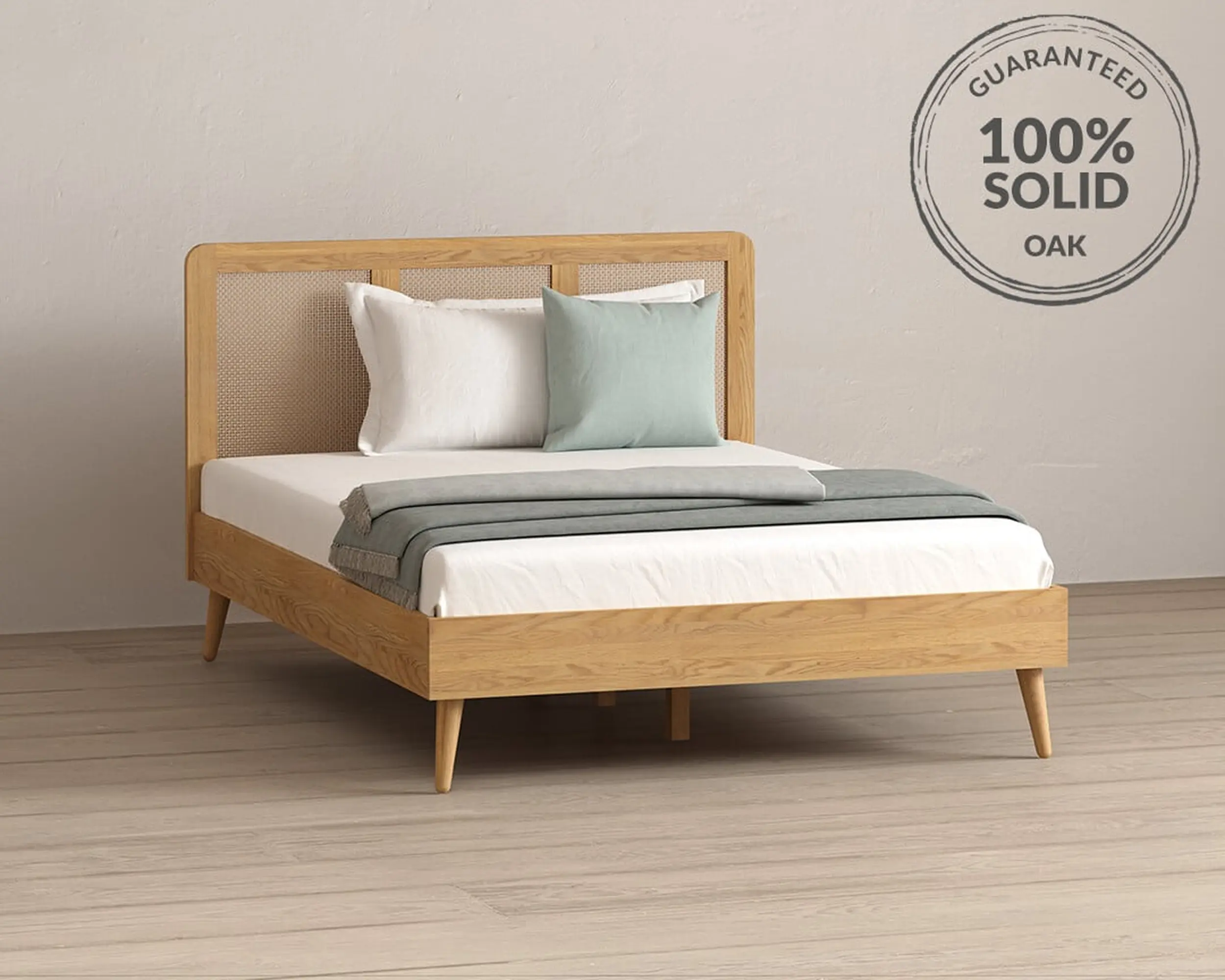 Oak Wood King Size Bed With Rattan