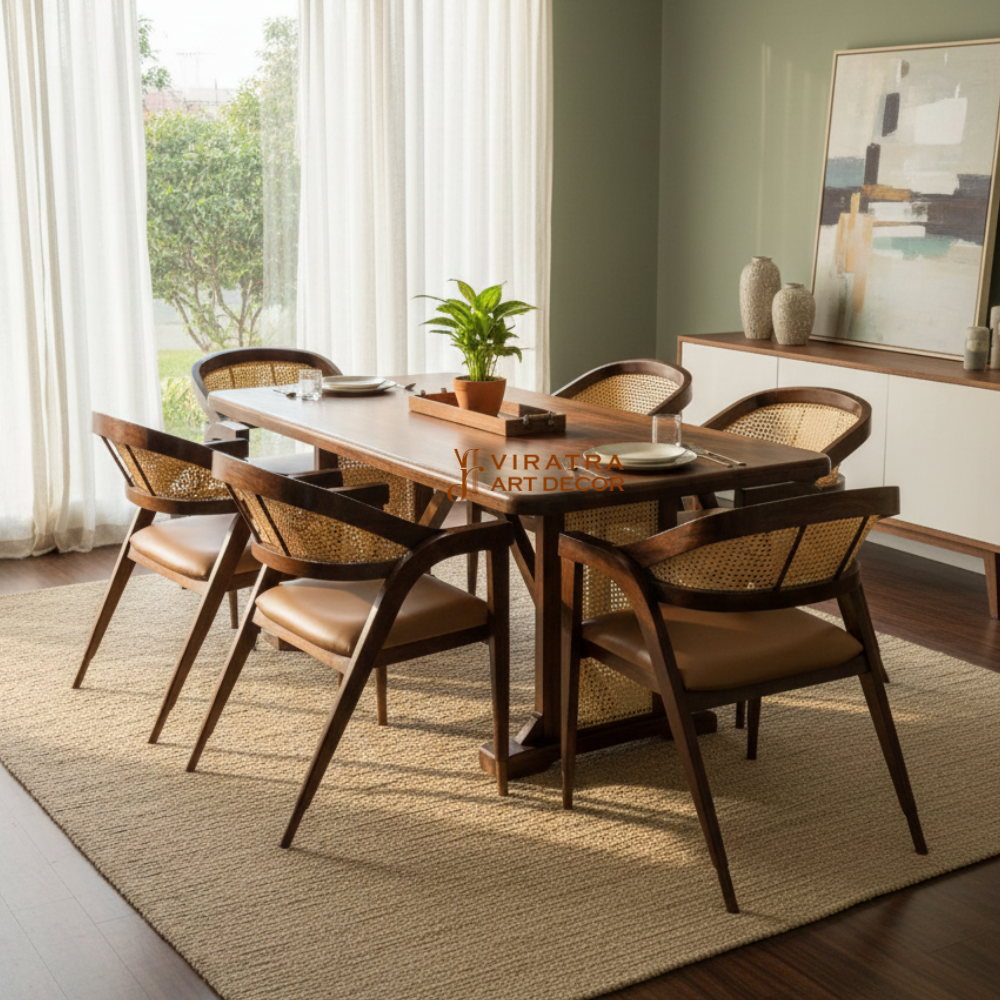 Sheesham Wood Dining Set, Walnut Finish ,6 Seater