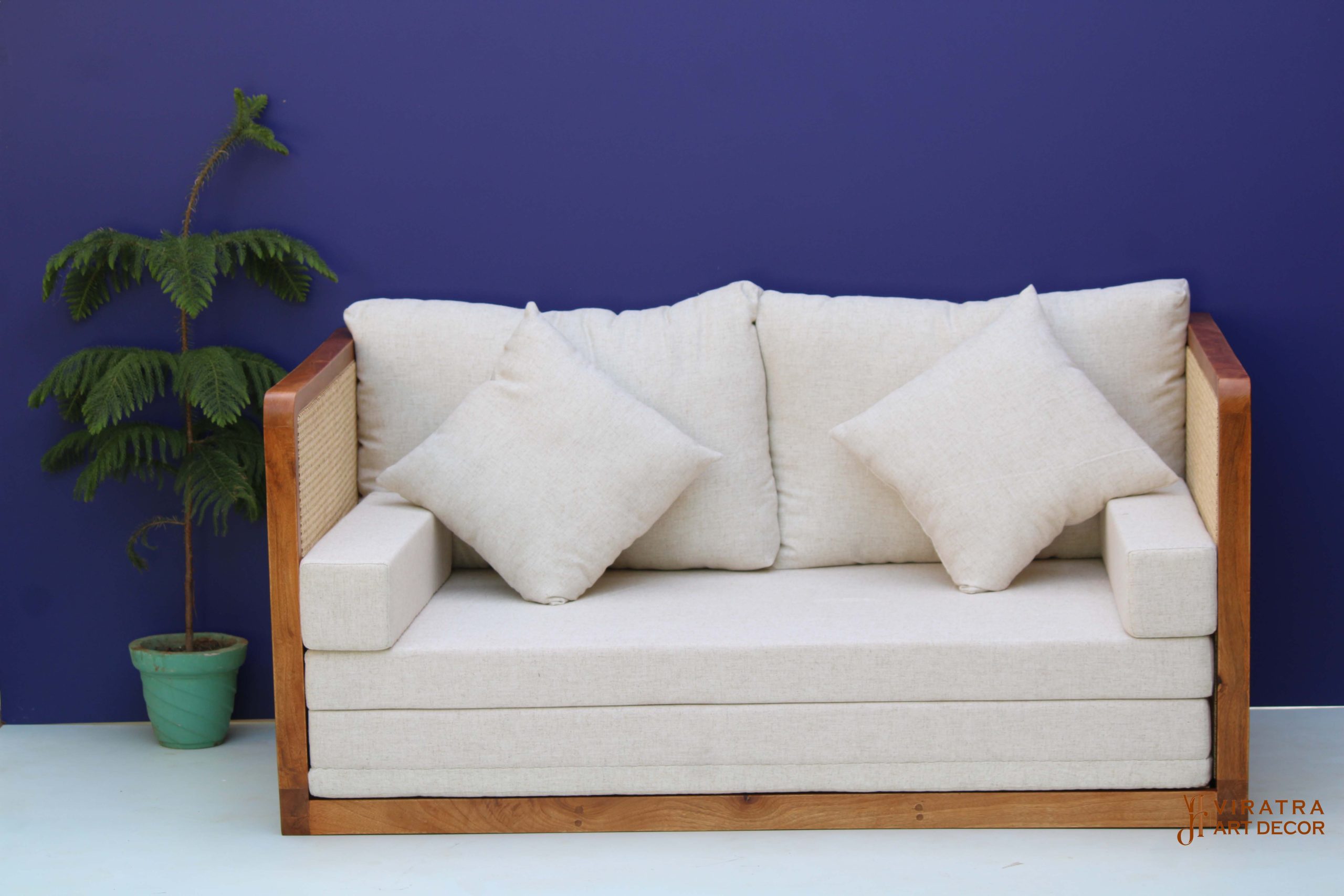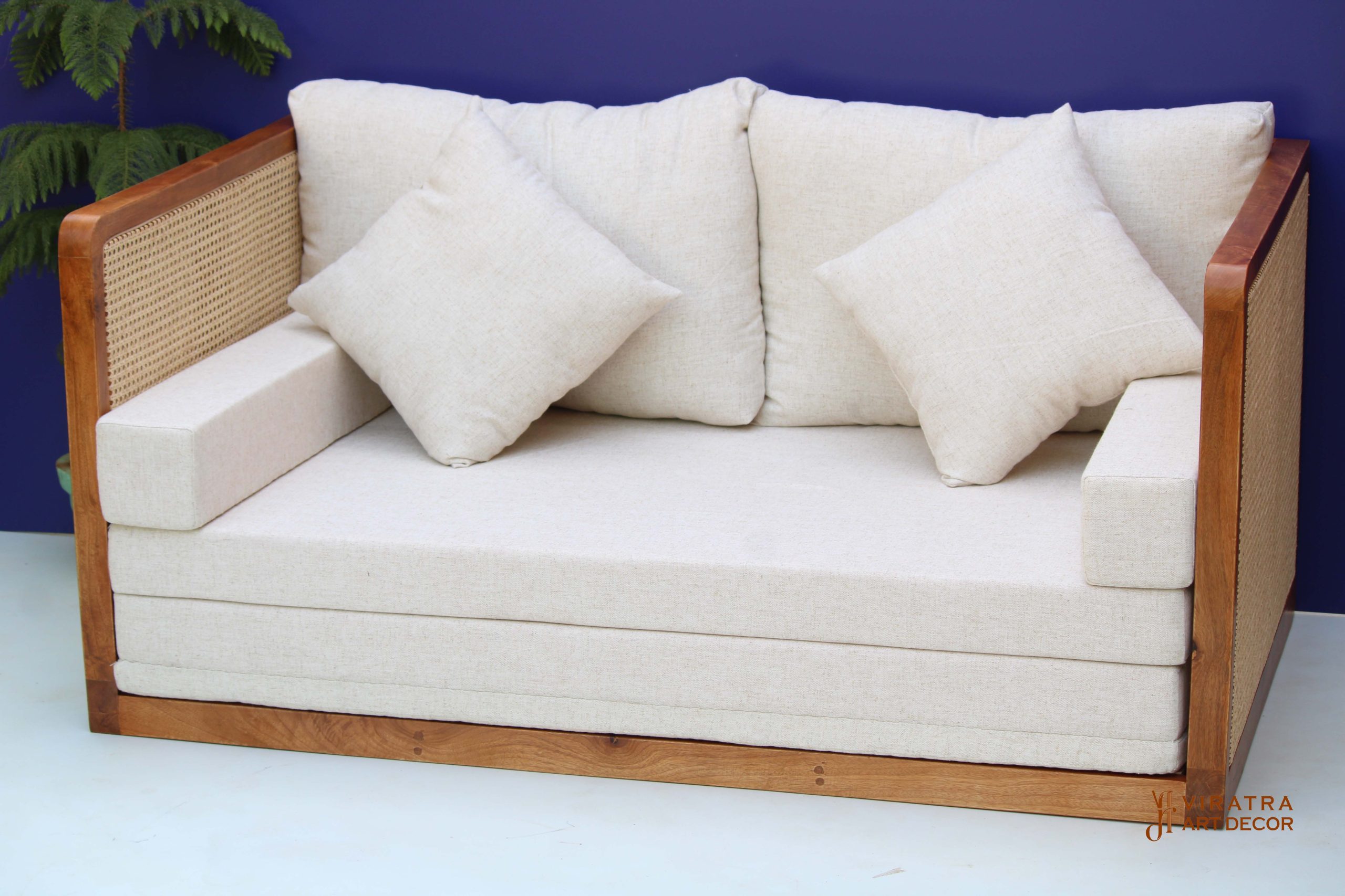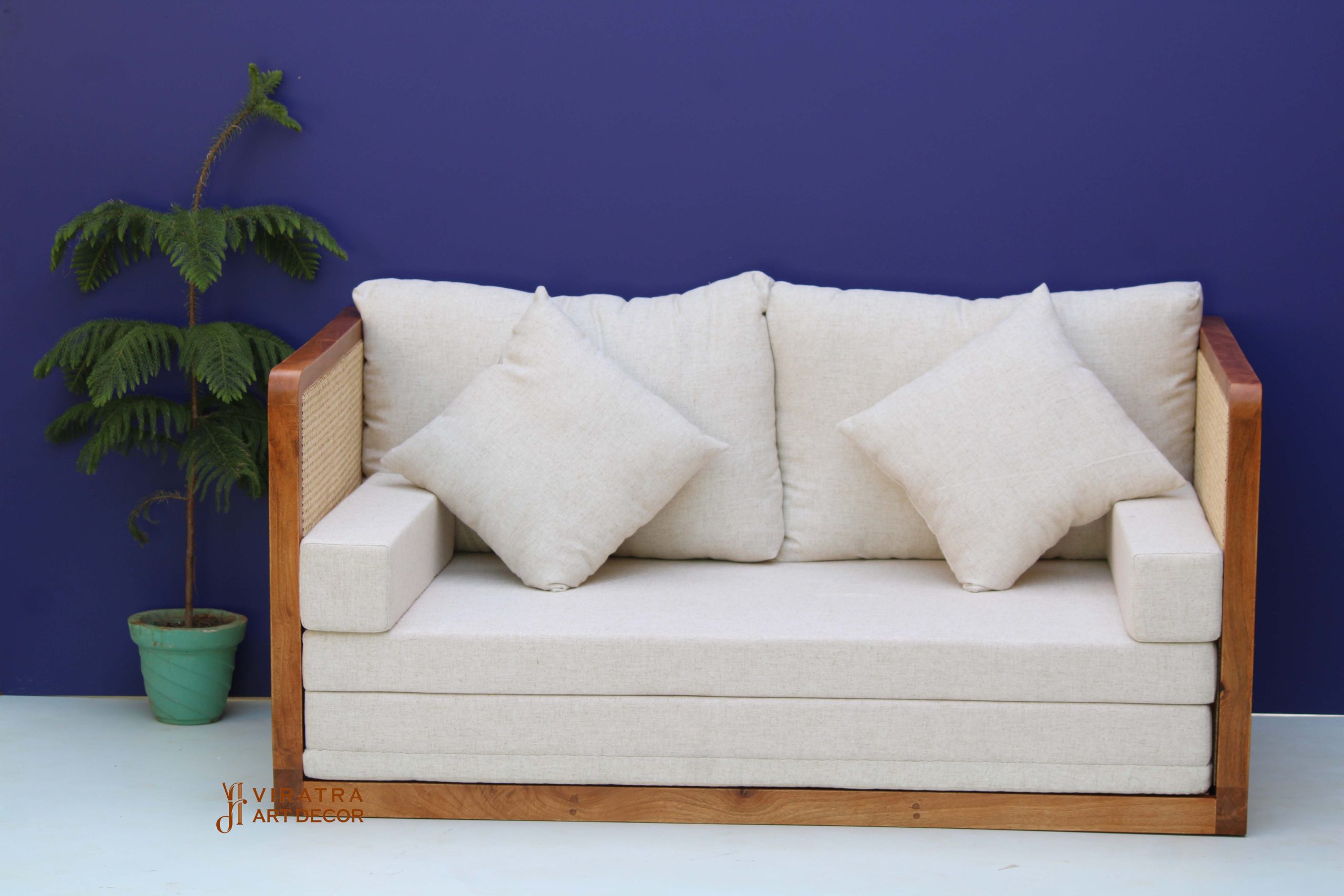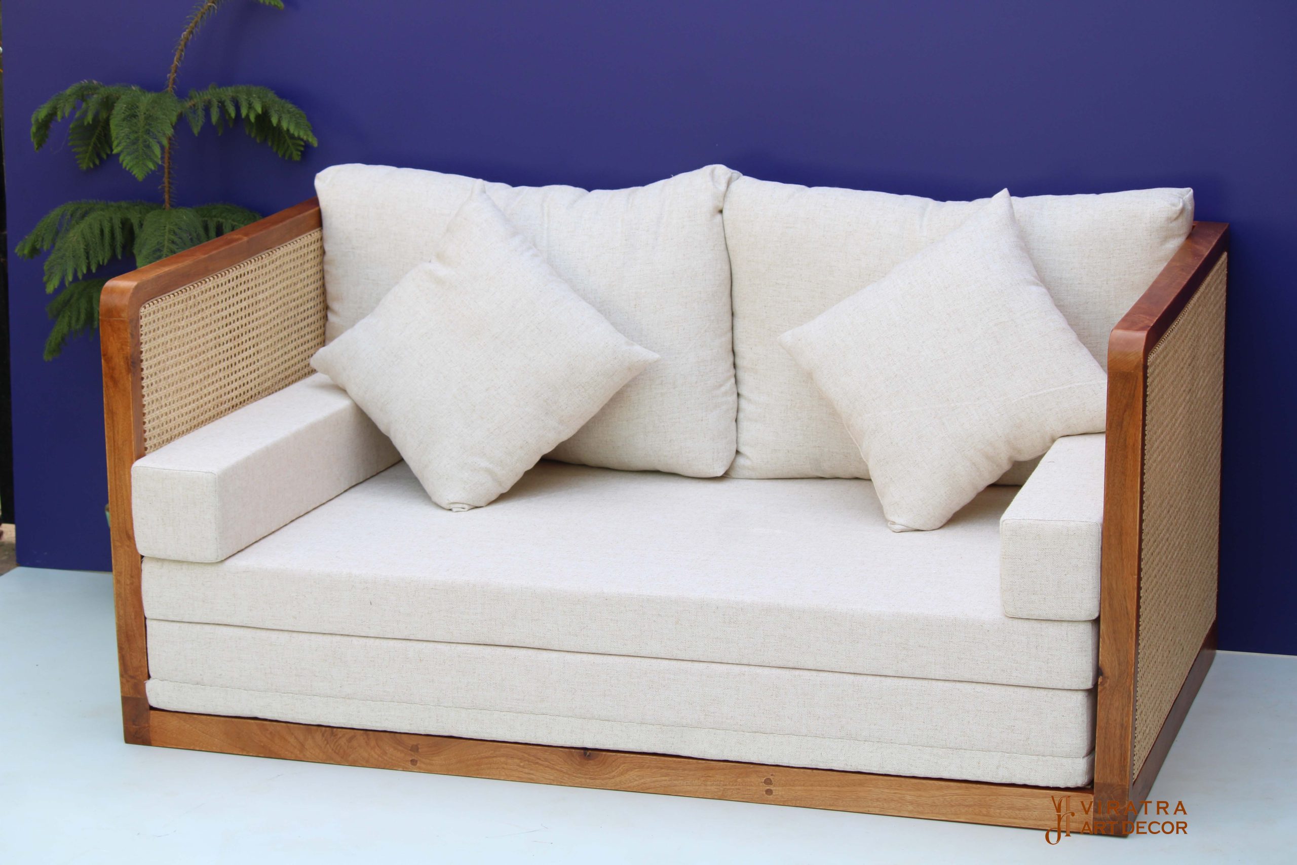 Sofa-Mango Wood Sofa Cum Bed, Rattan Furniture