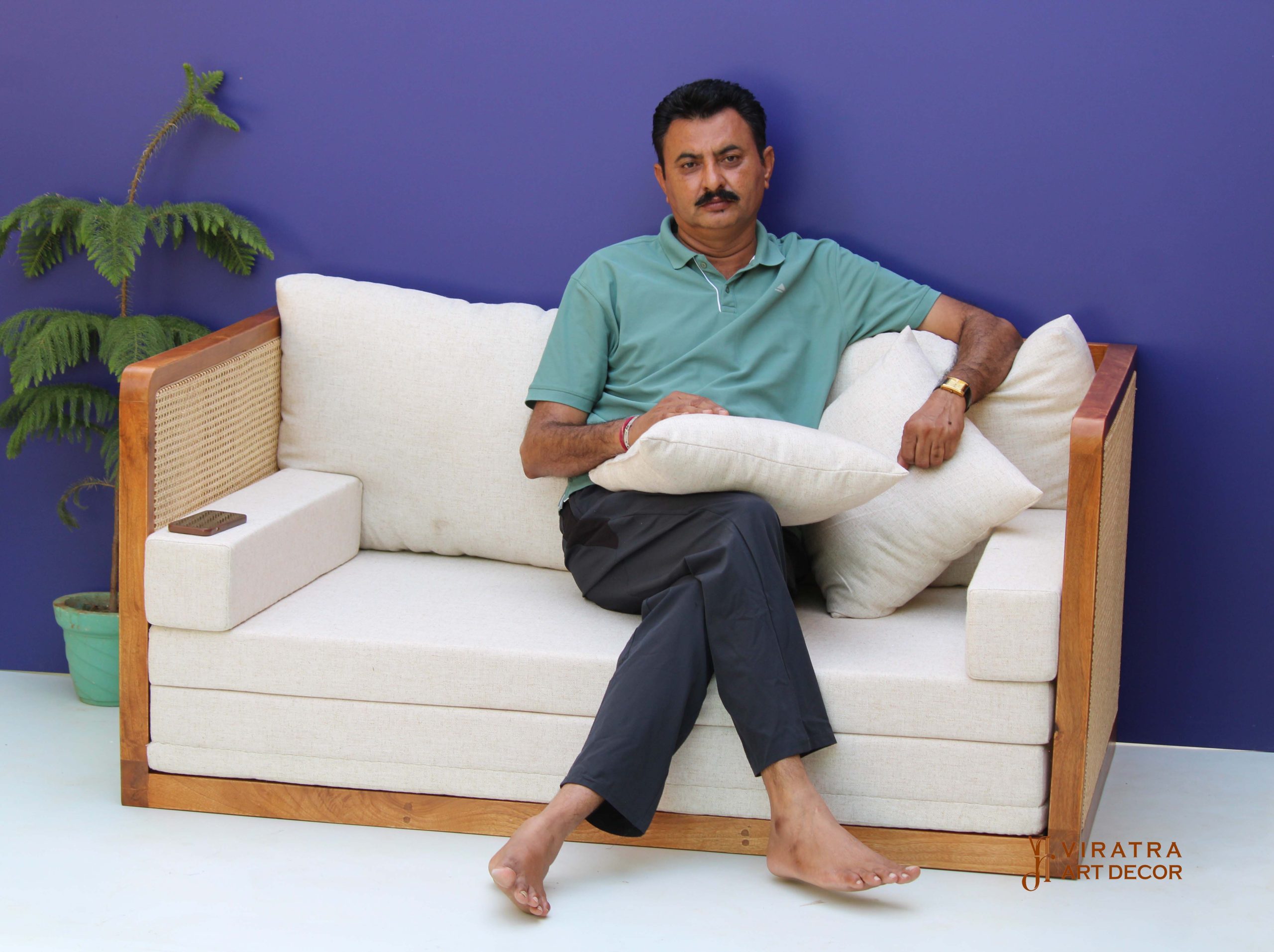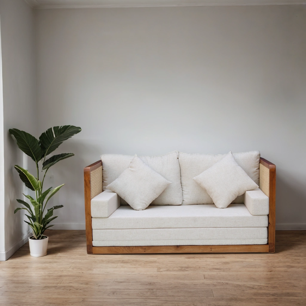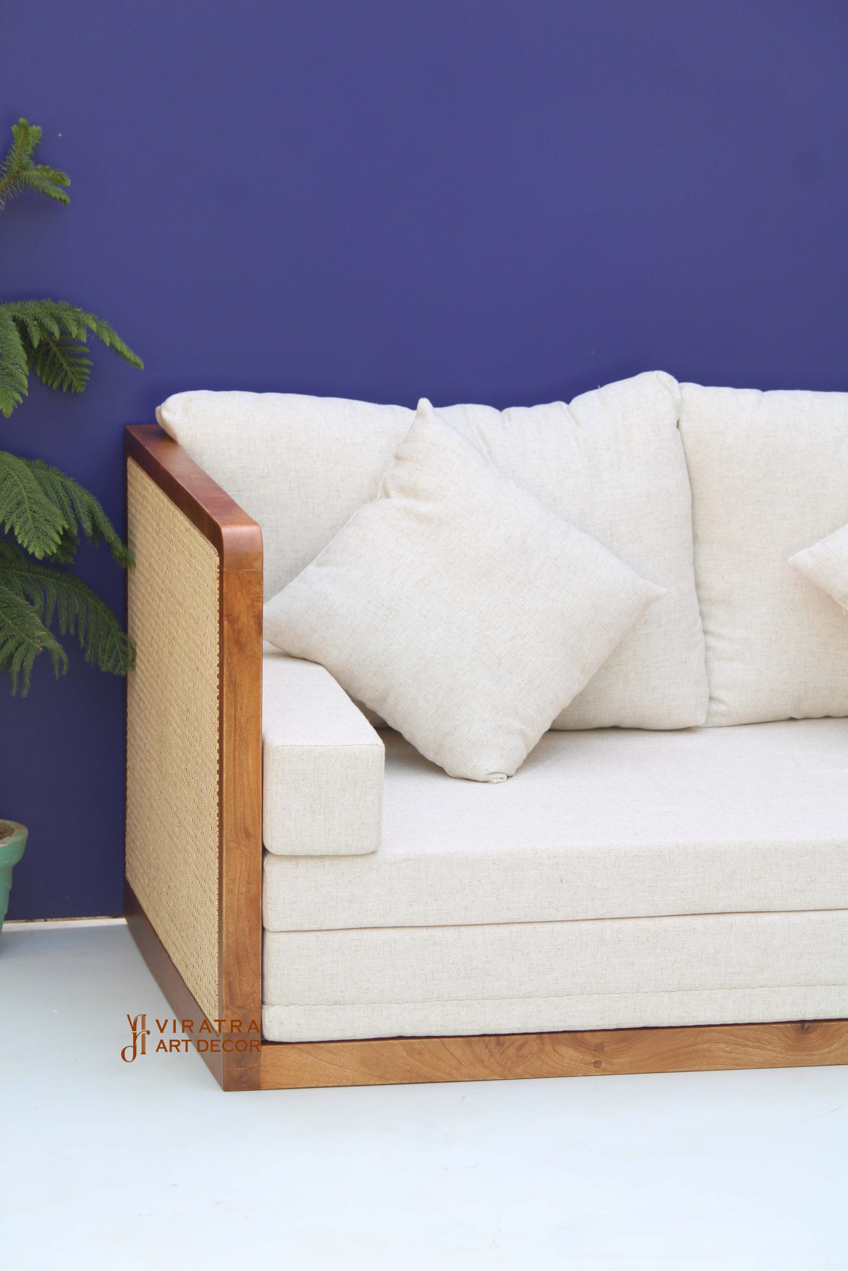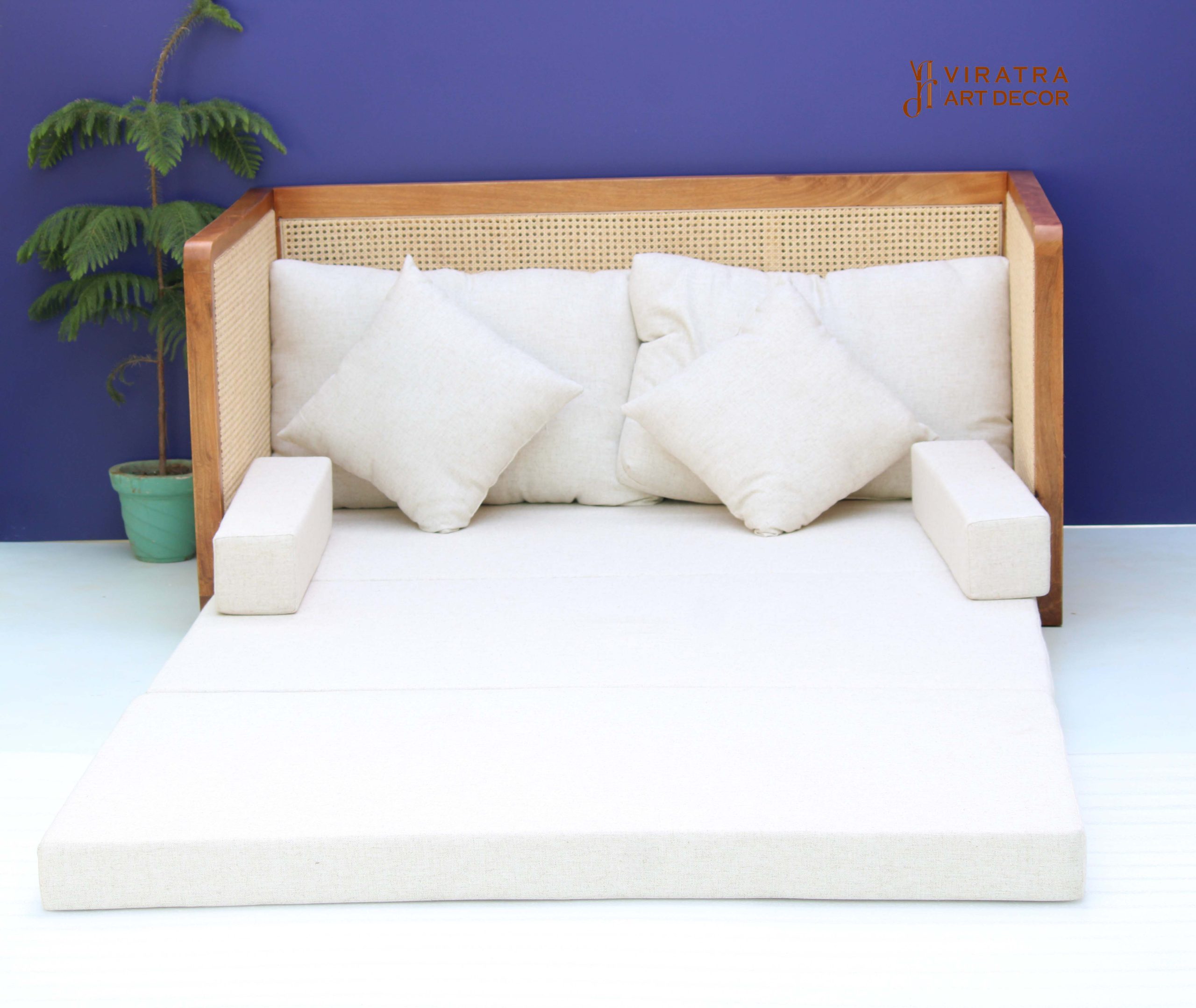 Sofa-Mango Wood Sofa Cum Bed, Rattan Furniture