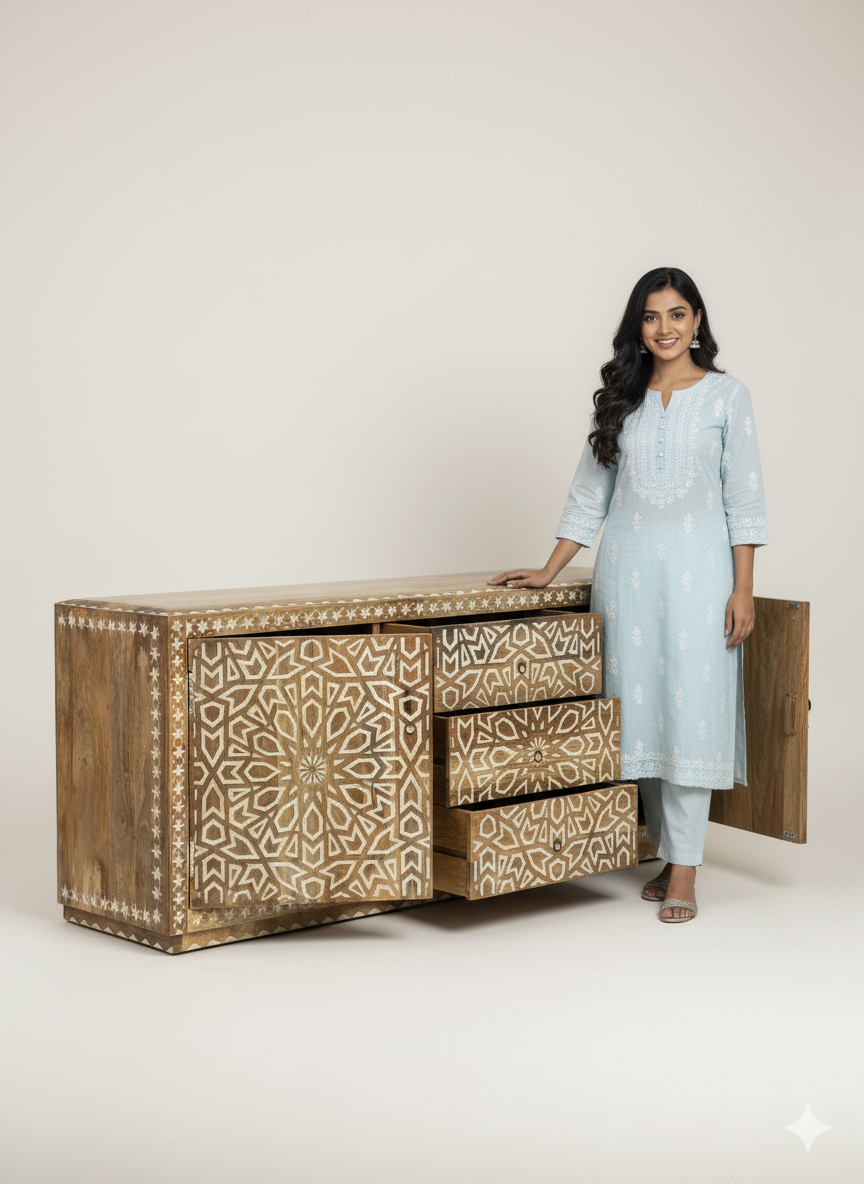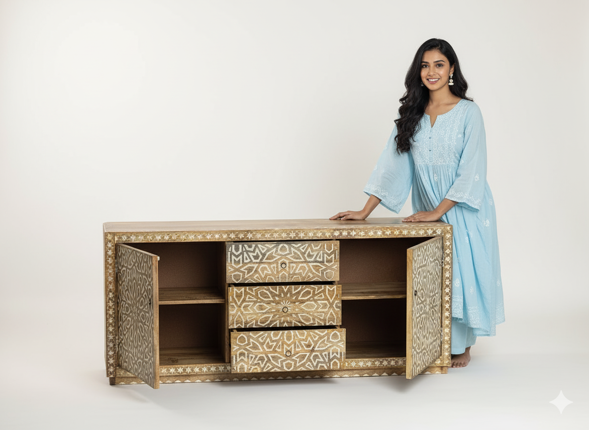 Solid Wood Cabinet With 3 Drawer And 2 Door