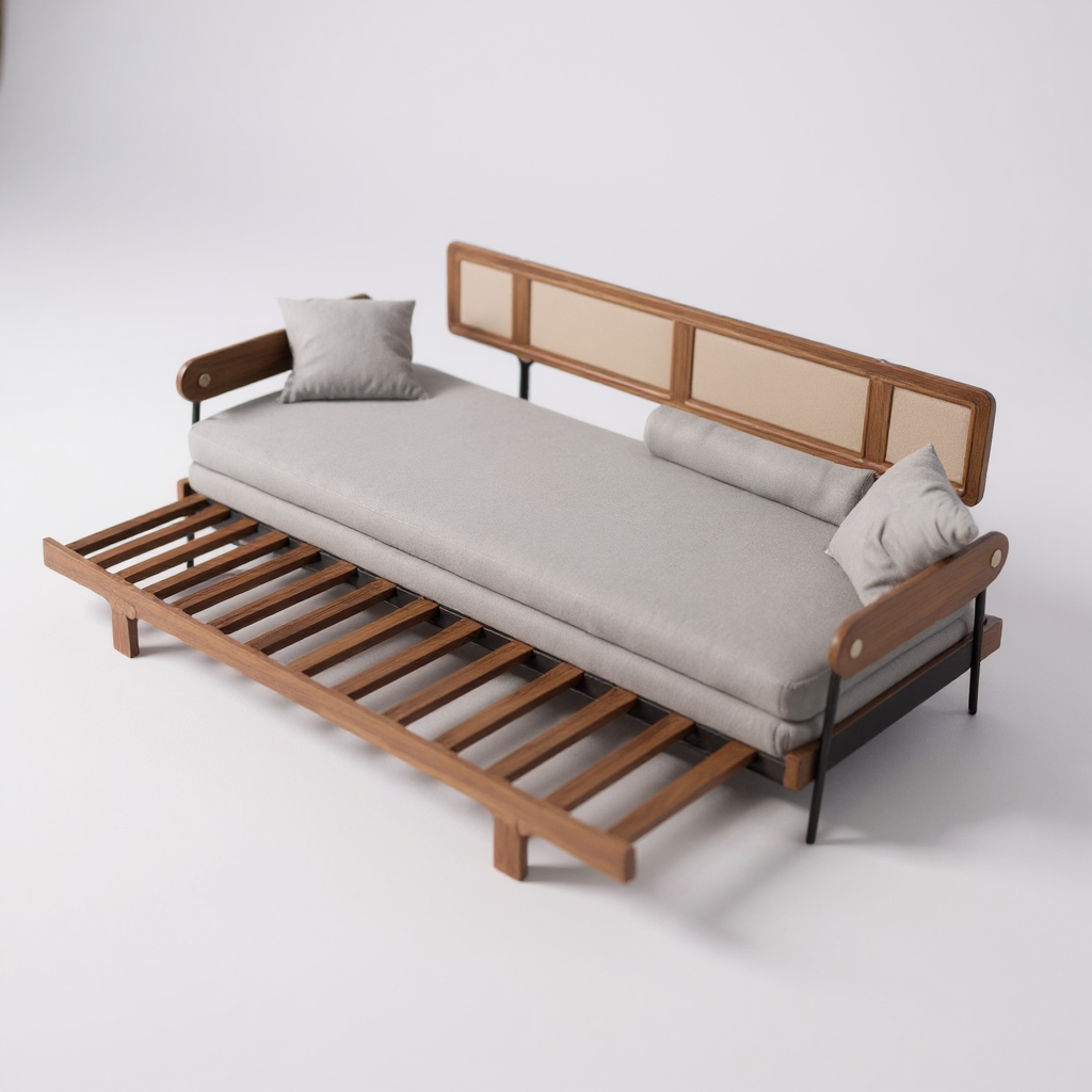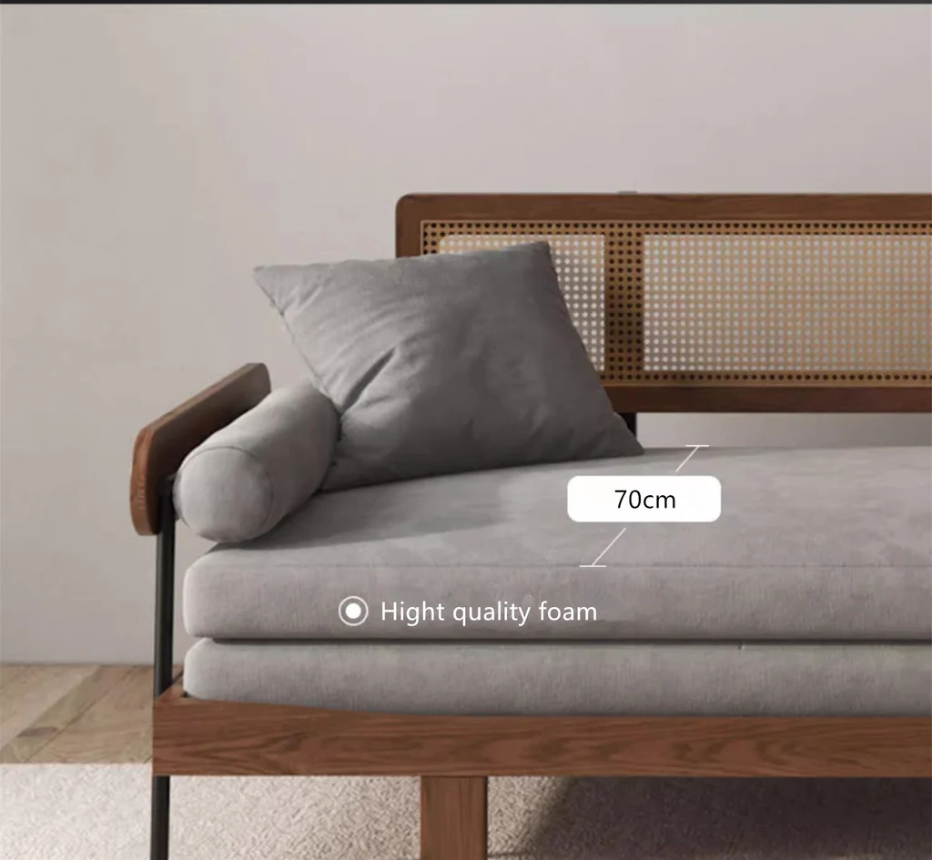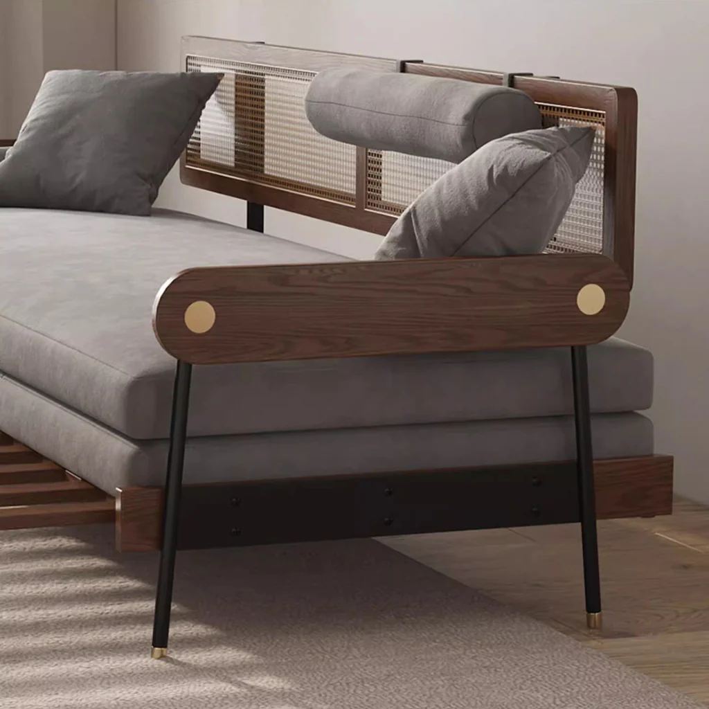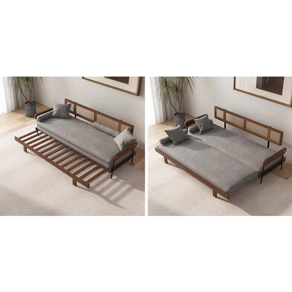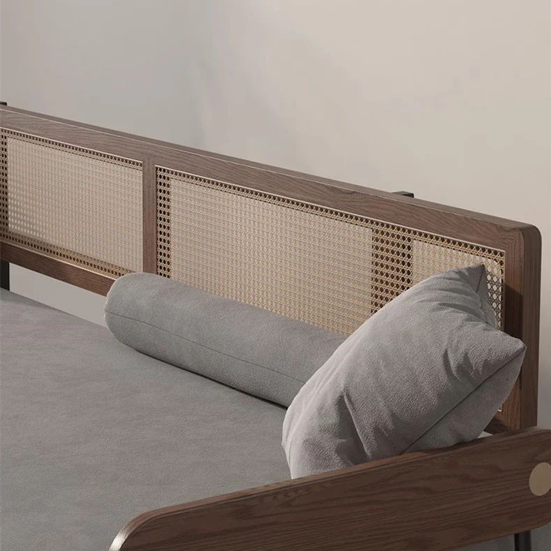 Solid Wood Minimalism Rattan Back Support Sofa Cum Bed