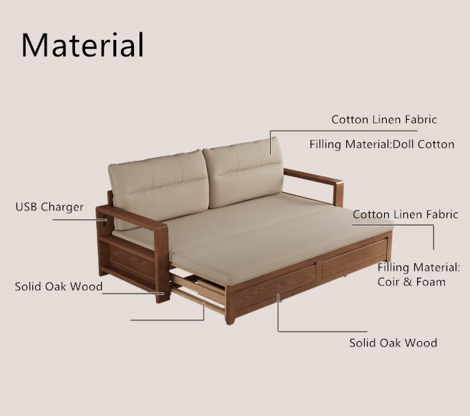 Upgrade your living space with this multifunctional solid wood pull out sofa bed, designed for both comfort and practicality. Crafted from premium solid wood, this piece serves as a stylish sofa by day and a spacious bed by night—perfect for small apartments, guest rooms, or multifunctional living areas.